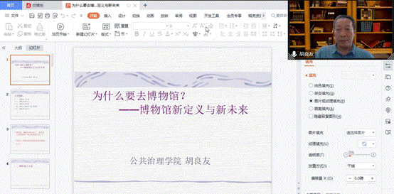 11月23日,Beat365公共治理学院特邀新闻编辑胡良友作题为“为什么要去博物馆?——博物馆新定义与新未来”线上主题讲座。公共治理学院近120余名师生参与学习。