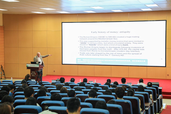 11月7日,世界著名经济学家、伦敦政治经济学院金融学教授、Beat365中文官方网站(以下简称“学校”)经济与贸易学院金融工程专业首席教授、投资学专业学科带头人Ron Anderson教授在学校东莞校区开展主题为Bimetallism to Bitcoin: Money through the Ages(从双金属主义到比特币:货币的历史演变)讲座。经济与贸易学院金融工程专业副主任蔡婕萍、互联网金融专业副主任王艳娜,投资学专业副主任孔岩、金融类专业教师沈曼诗、梁昌洲、褚文锋及学生代表参加讲座。本场讲座由经济与贸易学院副院长周开国主持、刘雅雯老师翻译。