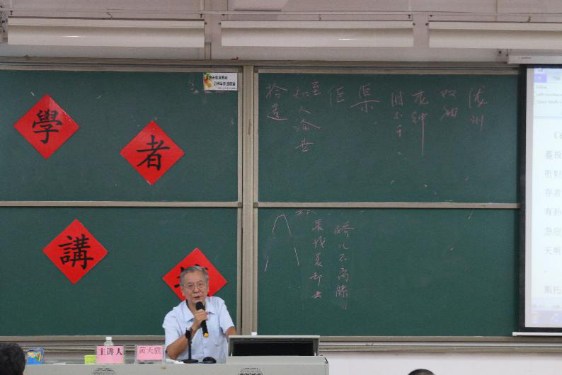 黄教授列举了一些诗词帮助同学们理解与掌握。他认为欣赏诗词要做到三点:第一,弄清每个字词的释义。由于古代诗词大多用古汉语书写,书面语用得较多,同当今的普通话用语并不相符,因此我们可借助《辞海》等工具书去弄清每个字词的释义。第二,在理解的基础上知人论世地仔细品味诗词。诗里面蕴含着诗人的感情,而一个人的感情是受社会和一定文化影响的,脱离这些也容易产生误读。比如“日啖荔枝三百颗,不辞长作岭南人”,结合苏东坡的经历读此诗便可得知,这并非写荔枝本身,只是一种在被贬状况下的反讽。黄天骥教授还通过阐述杜甫等人的不同生活经历、性格,对杜甫的《羌村三首》、贺知章的《回乡偶书》、宋之问的《渡汉江》这几首诗作了深入浅出的讲解,表明了知人论世对品诗的重要性。第三,再创造,加入自身思考去读诗。不同的诗有不同的解释,通过知人论世去理解一首诗是细读、品读诗词的基础,而要实现真正地品读,还要加入我们的感情以实现再创造。黄教授认为,没有再创造就不是文艺。他通过讲解《石壕吏》深入阐解“再创造”的概念。《石壕吏》里的再创造是虚实结合,也是和谐,这是中国传统审美思想的要求,即讲求阴阳、刚柔、虚实的结合。在场同学听得入神,黄教授生动有趣的讲解让同学们感受到了诗词的内涵与魅力,激发了同学们学习诗词的兴趣。