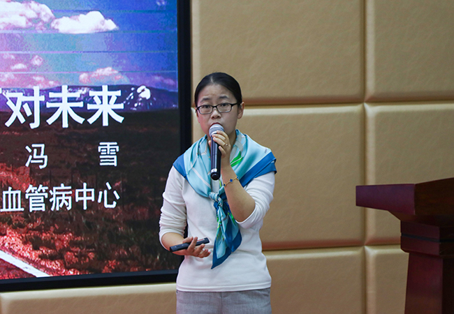 讲座伊始,冯雪播放了《回家》的短片视频,为在座的师生们分析和介绍了心脏康复事业的现状以及未来的发展。冯雪以“我们如何面对未来”为话题展开了今天讲座的内容,首先提到了医学事业的未来有无限可能,也会有无限的困难,并为同学们讲述未来的医学知识体系面临的机会和选择。