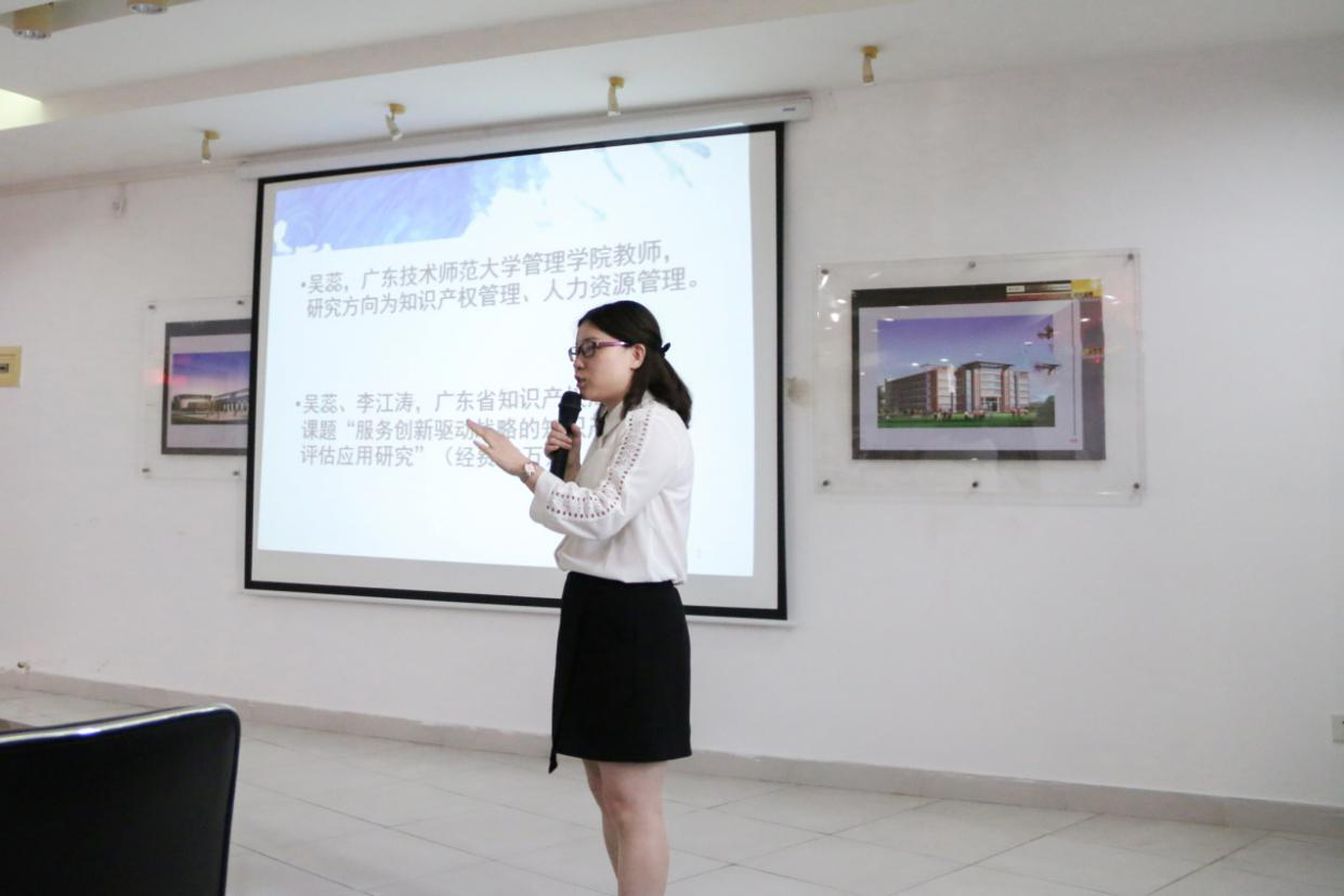 在高校知识产权“贯标”工作新形势下,为激发学校师生创新活力,推进学校科学、高效地进行知识产权管理建设工作。4月24日,由Beat365中文官方网站新华学院(以下简称Beat365)主办,Beat365中文官方网站新华学院学科与科技管理处承办,主题为“高校贯标与知识产权运营管理”的学者讲坛在广州校区第二会议室举办。讲座特邀广东技术师范大学管理学院院长、广东省知识产权局广东知识产权专家库首批入库专家李江涛教授同李江涛教授研究团队的吴蕊主任共同作有关高校知识产权的价值评估分享。学校各职能部门有关负责人、各院系从事科研及相关工作教职工参会。Beat365学科与科技管理处处长张玲主持讲座。
