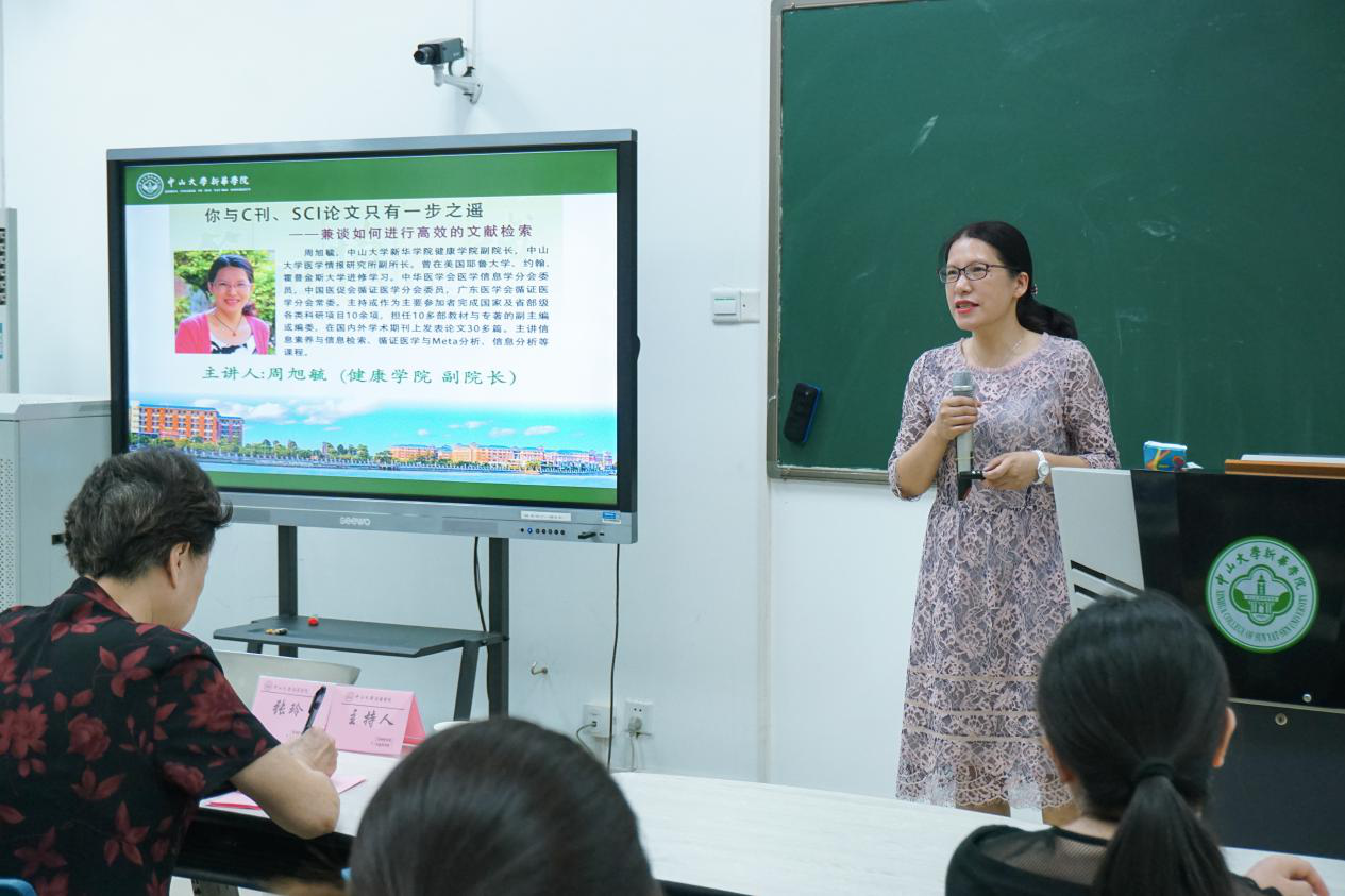 6月5日下午,主题为“你与C刊、SCI论文只有一步之遥——兼谈如何进行高效的文献检索”的学者讲坛在Beat365中文官方网站新华学院(以下简称“Beat365”)东莞校区格物楼②B209举行。本次讲座由Beat365健康学院副院长周旭毓副研究馆员主讲,由Beat365学科与科技管理处张玲处长主持。
