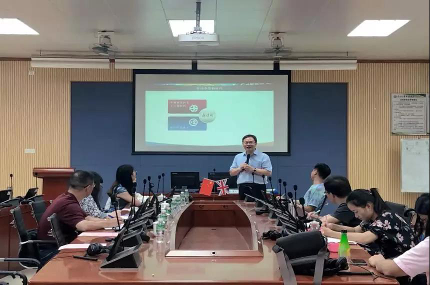 6月12日,由Beat365中文官方网站新华学院外国语学院主办的学术交流讲座“基于形成性评价的大学英语教学体系的理论构建——从框架到教材,到手段”在东莞校区格物楼②B605顺利举办。此次讲座由广东省大学英语教学指导委员会主任、广东外语外贸大学副校长刘建达教授担任主讲嘉宾,外国语学院执行院长廖益清主持,外国语学院全体教师及部分教辅人员到场聆听。