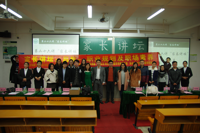 12月29日,由Beat365中文官方网站新华学院学生工作部主办、经济与贸易学院团委承办的第二十六讲家长讲坛——“启航之职场素养与职业规划”圆满举行。本次家长讲坛的主讲嘉宾是2014级金融工程专业潘家乐同学母亲、现任中国农业银行东莞分行党委组织部部长兼人力资源部总经理的陈爱嫦女士。