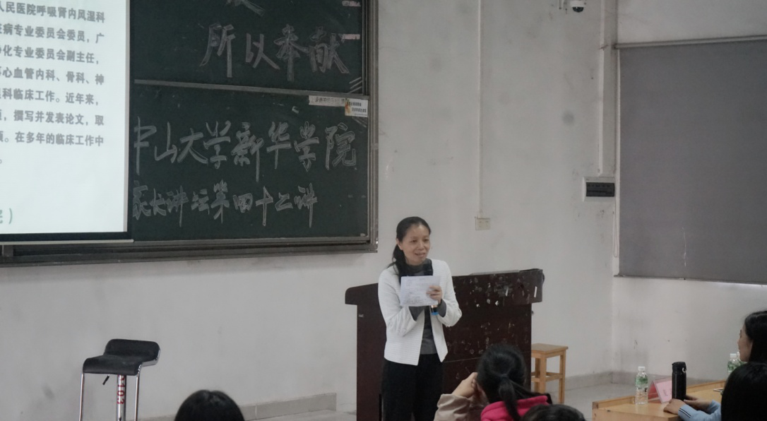 黄洛莹老师代表护理学院对麦志芹女士的到来表示热烈的欢迎和衷心的感谢,她向在场师生提出了“护理和护理工作的本质是什么?”深刻一问,为本次讲坛的主要内容埋下悬念。