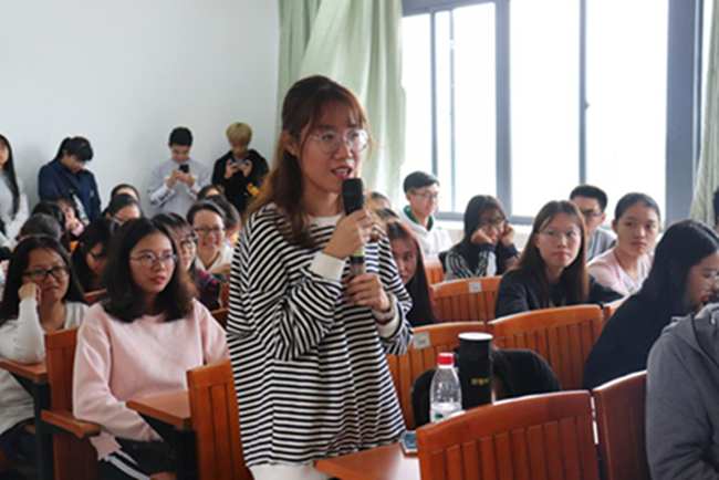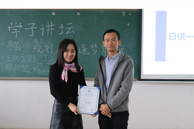 她认为理财规划的核心是掌握理财规划的模型,如帆船理论、理财金字塔等,思敏校友以通俗易懂的语言让同学们领悟到基金定投的独特魅力,激发起在场师生的理财兴趣,也让同学们对于今后合理理财有了进一步的认识。