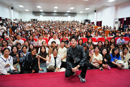 讲座吸引了近五百名新华学子,现场座无虚席,走道、讲台两侧、讲学厅外都站满了学生,掌声、欢笑声、问答声此起彼伏,气氛“火爆”。