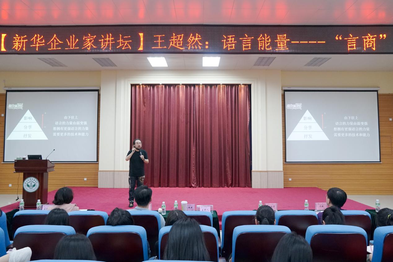 人为什么要说话?王超然认为有三种原因:交流、改变和发泄。王超然为在座师生讲述了“如何用一只羊换一百只狗”的故事,用大胆、夸张的例子说明即使双方供需不对等的情况下,语言也能填补缺失的价值。