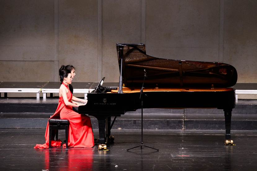 第二篇章“旭日华阳·光从云上升起”展现新华师生共育的美育风采与精神力量。此篇章的亮点无疑是——刘婉莉副校长与郭梦迪老师的钢琴四手联弹《卡农》,作为学校美育改革的推动者与本次音乐会总导演刘婉莉副校长登台与青年教师同奏“光之和弦”,以音乐诠释“教学相长、美育共融”。她的专业演奏赢得全场热烈掌声,是当晚最具象征意义的时刻之一。