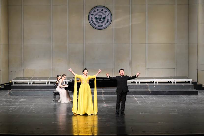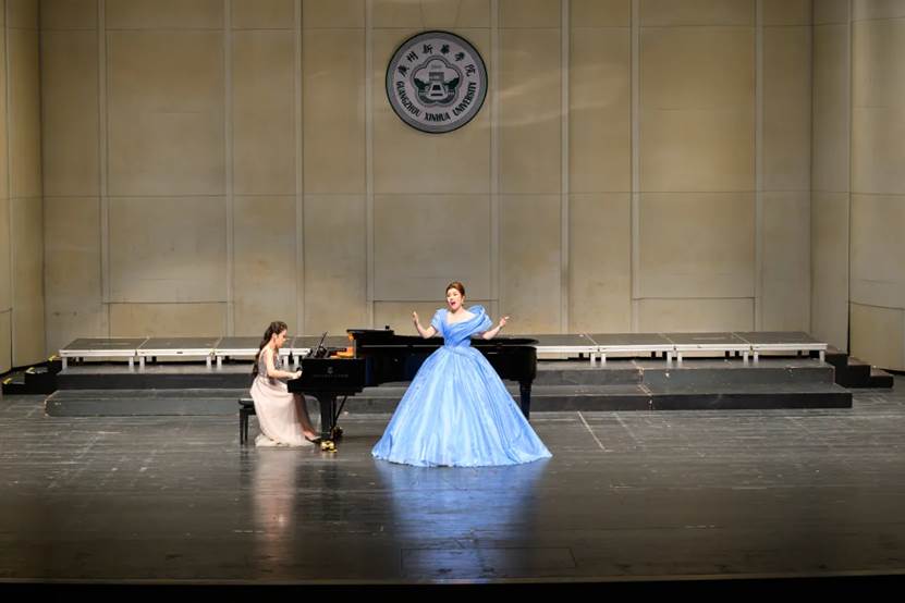 第三篇章“青春无界·梦向湾区海风”以国际化视野拥抱新时代的青春与梦想。男声独唱《人们已入睡》,钢琴四手联弹《小交响曲》,花腔女高音《美丽可爱的光》,钢琴独奏《音诗二首》《艺术家的生涯》《卡门》《茶花女》等歌剧联唱从俄罗斯到法国,从浪漫主义到现代派,从民族风格到世界经典,新华师生用专业技艺征服全场,彰显学校在艺术教育上的国际水准。