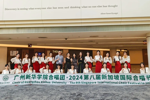 音乐系合唱团师生参加在新加坡国立大学举办的第八届新加坡国际合唱节比赛,与国内外高校激烈角逐,斩获A3组(同声组)银奖、F组(民族组)铜奖,在国际舞台上一展广州新华学子风采。