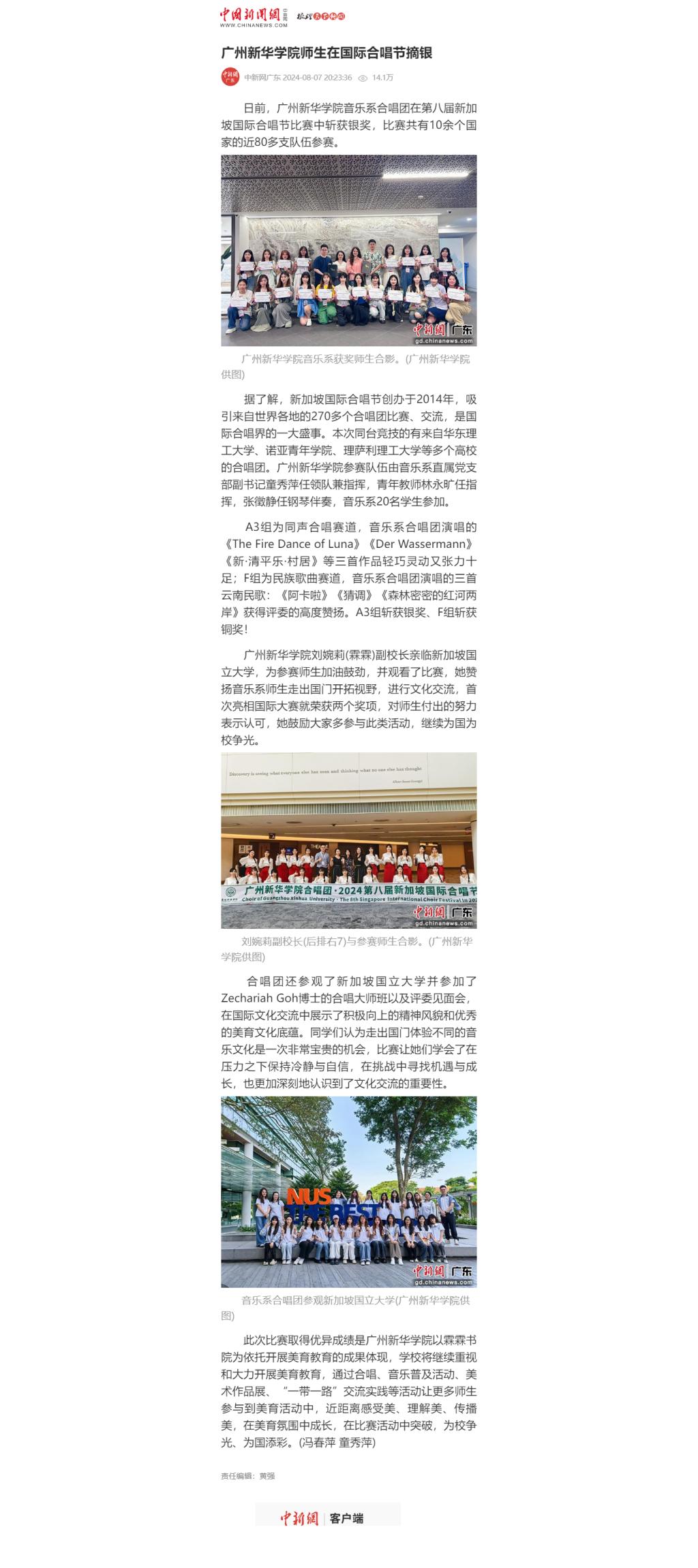 合唱团还参观了新加坡国立大学并参加了Zechariah Goh博士的合唱大师班以及评委见面会,在国际文化交流中展示了积极向上的精神风貌和优秀的美育文化底蕴。同学们认为走出国门体验不同的音乐文化是一次非常宝贵的机会,比赛让她们学会了在压力之下保持冷静与自信,在挑战中寻找机遇与成长,也更加深刻地认识到了文化交流的重要性。