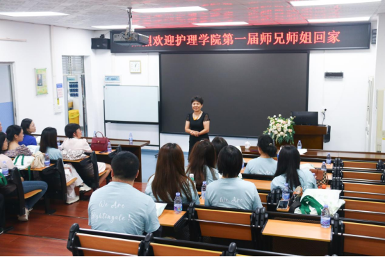 护理学院院长王秀岚教授对校友们的归来表示最热烈的欢迎。她深情回顾了学校办学的发展情况,详细介绍了护理学院在学科建设、人才培养、科学研究、社会服务等方面取得的跨越式发展和成就。她表示大家在各自岗位上取得的辉煌成绩,就是对母校教育质量的最好印证。她还殷切嘱托各位校友,继续关注和支持母校的发展,常回家看看,为学院的建设建言献策,同时祝愿大家在未来的事业和生活中再创佳绩。