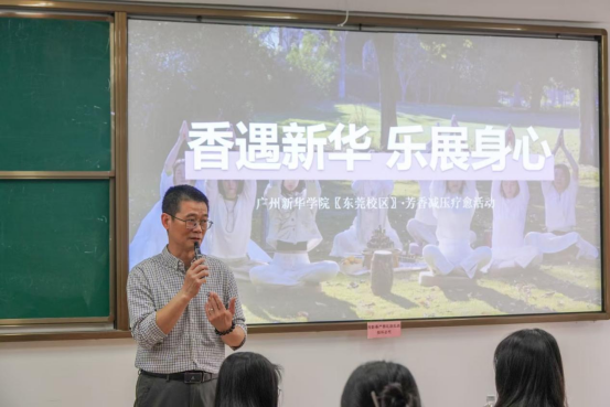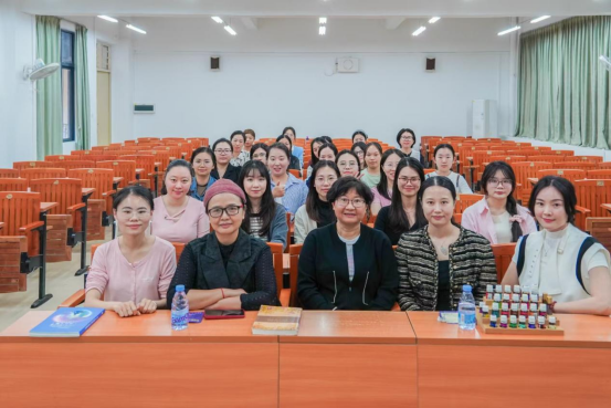 芳香疗法活动特邀国家高级植物精油疗法理疗师、美国联盟瑜伽认证导师香湘担任主讲,通过四个板块带领教职工们探索植物精油的科学奥秘。现场选用薰衣草、甜橙等天然植物精油,结合肩颈舒缓手法教学,让女教职工们在氤氲香气中释放压力,重拾内心宁静。