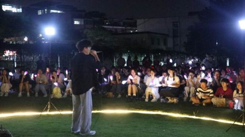 护理学院于足球场举办迎新草地音乐会。志愿者们精心筹备,师生同台献艺:钢琴口琴合奏温柔动人,歌曲舞蹈点燃全场,乐队演出引发合唱。护理学院执行院长王秀岚亲切寄语新生。现场荧光如星海,掌声与歌声交织,以“护暖”为魂,让新生在温馨氛围中开启大学旅程。