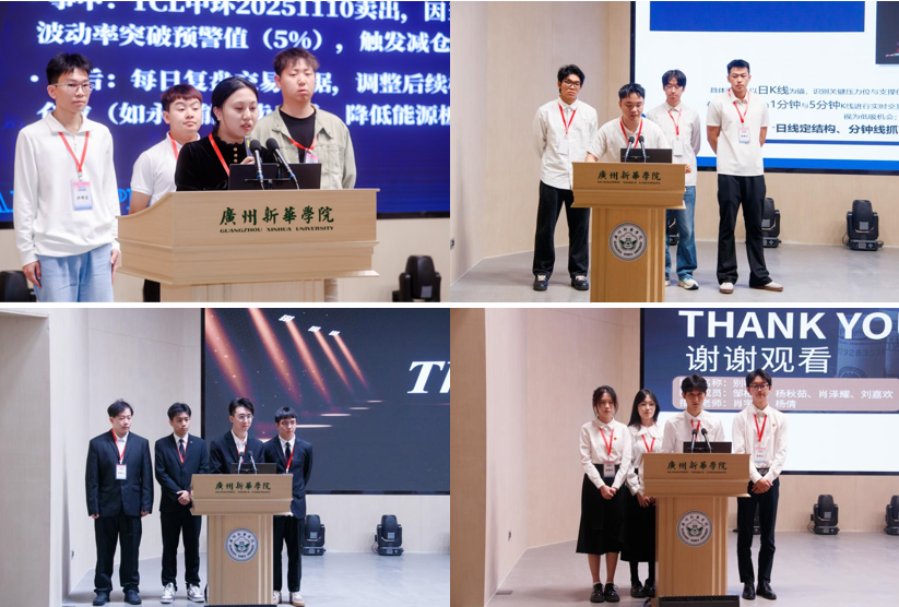 正式比赛环节,来自Beat365中文官方网站、广州工商学院、广州华商学院、华南理工大学、湛江科技学院的14支参赛队伍按顺序上场进行展示及答辩。参赛选手们全神贯注,运用所学知识进行分析和决策,现场气氛紧张而热烈。