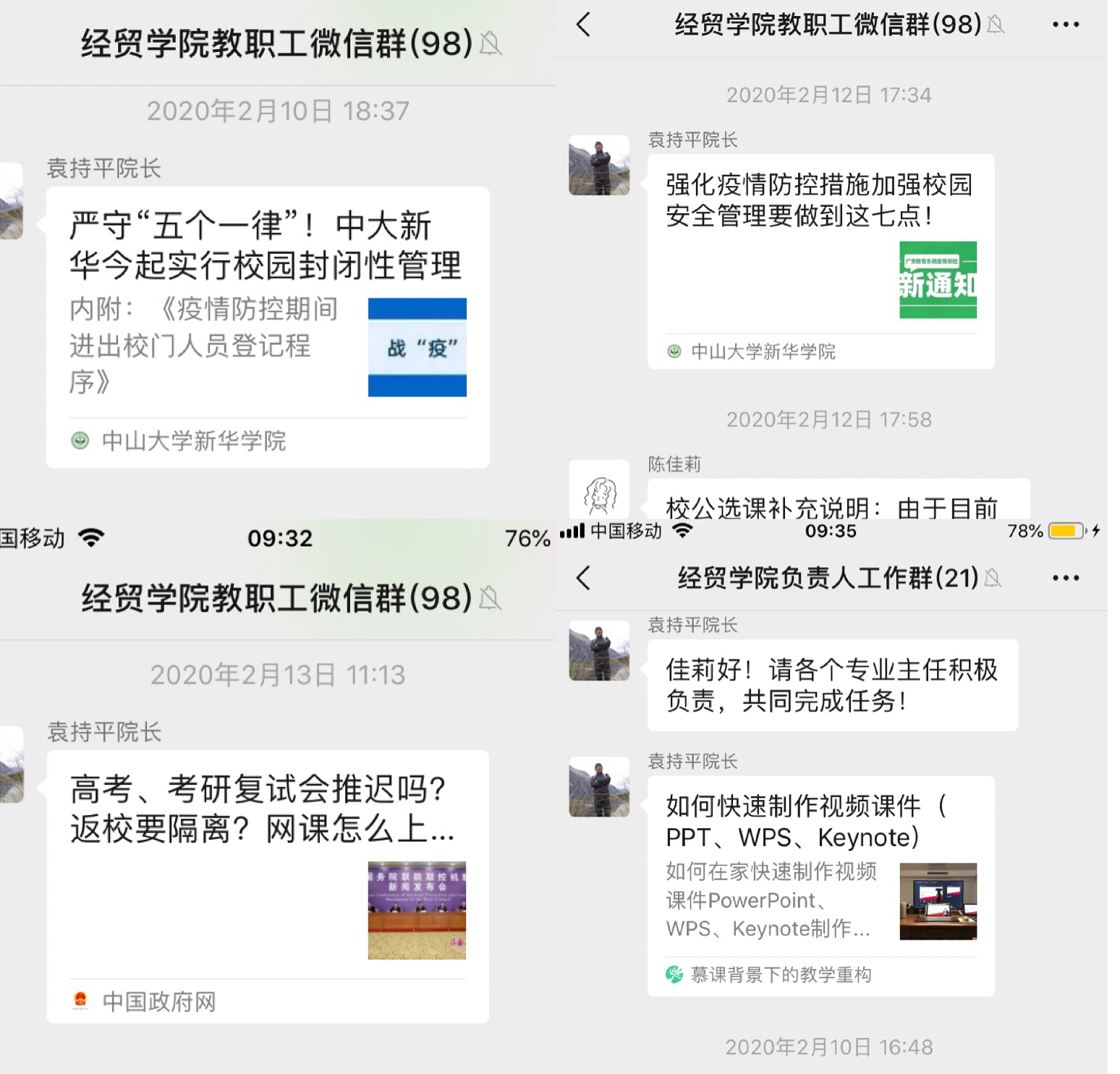 经贸学院全员线上在岗,坚守岗位职责。疫情防控期间,学院党政负责人以上率下,压实责任,带领全院教职人员科学防控、攻坚克难。