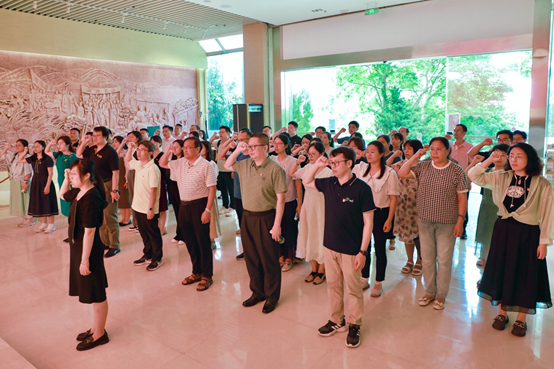 在参观开始前,付晶带领党员同志们重温了入党誓词,进一步坚定了为党的事业奋斗终身的信念。纪念馆内陈列着丰富的历史文物和图片资料,生动地展现了东江纵队在抗日战争中的英勇事迹和辉煌成就。教师们认真聆听讲解员的讲解,不时驻足观看、交流讨论,深入了解东江纵队的历史背景和战斗历程,深刻感受和领悟了“铁心向党、赤心为民、不畏艰险、不懈奋斗”的东纵精神。