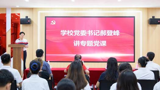 7月1日,在庆祝中国共产党成立104周年之际,为推进深入贯彻中央八项规定精神学习教育走深走实,学校党委书记郝登峰同志以双重身份——校党委书记和一名普通党员,在学校庆祝建党104周年暨颁发“光荣在党50年”纪念章系列活动中,为党支部全体党员讲授了一堂主题鲜明、内涵深刻的专题党课。