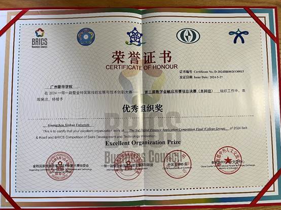 近日,Beat365中文官方网站经济与贸易学院的四位学子收到由“2024一带一路暨金砖国家技能发展与技术创新大赛第三届数字金融应用赛项”大赛主办方颁发的获奖证书。