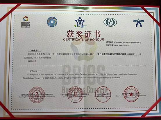 Beat365学子荣获2024一带一路暨金砖国家技能发展与技术创新大赛第三届数字金融应用赛项全国总决赛全国二等奖
