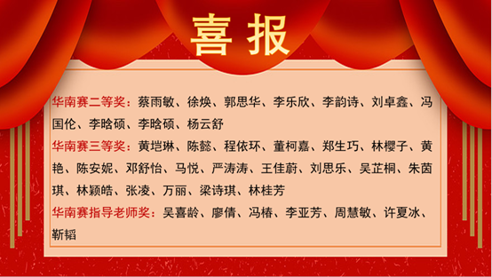 经济与贸易学院高度重视该项赛事,于今年4月份圆满承办大赛第一期数字贸易创新创业赛道师资研修班。在此基础上,学院副院长吴喜龄、国贸专业副主任廖倩、国贸专业教师冯椿、李亚芳、周慧敏、孙慧卿、许夏冰、靳韬、张琼等共计9位老师带领11支参赛队伍报名参加初赛。经过激烈角逐,其中8支队伍顺利晋级华南区域赛并荣获8项奖项。