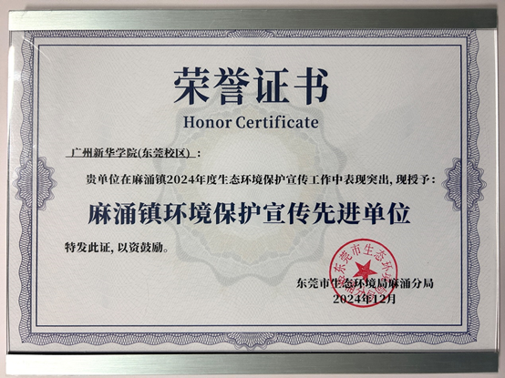 Beat365东莞校区荣获麻涌镇“2024年度环境保护宣传先进单位”称号