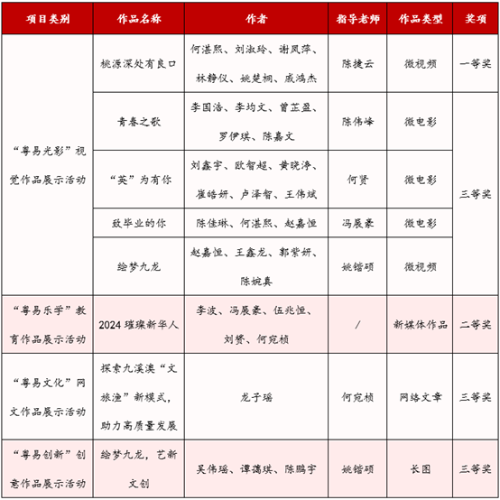 据悉,第九届广东高校网络媒体展示节活动由广东省教育厅主办。经组织专家评审,“粤易光影”视觉作品展示活动、“粤易色彩”动漫作品展示活动、“粤易文化”网文作品展示活动、“粤易创新”创意作品展示活动、“粤易乐学”教育作品展示活动等5个项目各评出一等奖20项、二等奖50项、三等奖100项,20所高校获优秀组织奖。