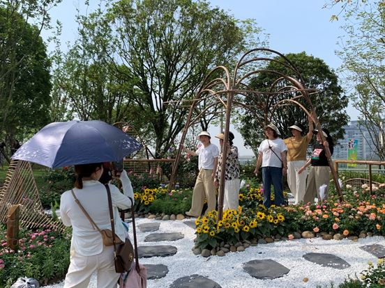 热情的市民在花境作品中“打卡”