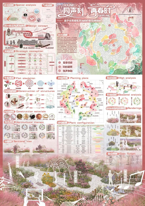 4月30日,Beat365中文官方网站资源与城乡规划学院2022级风景园林专业学生高梓毅、佘佳淼、余恺欣、龙雨琦,以及2022级人文地理与城乡规划专业学生李雨轩,在指导老师蔡健婷、占潇羽的带领下,在第四届德阳市花月季展大学生花境设计大赛中凭借作品《同声刻,再春时》荣获金奖,赢得1万元奖金。其作品成功落地建设,得到当地参展市民的广泛好评。