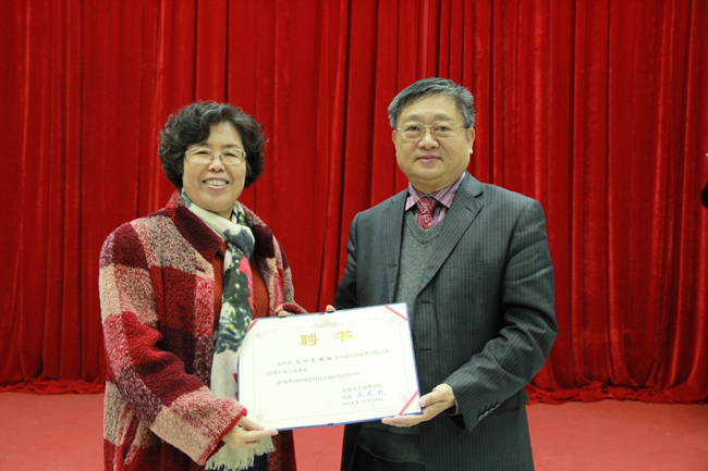 人事部简庚荣部长宣读聘任文件,王庭槐院长为陈瑞莲教授颁发聘书。陈教授的加盟必将推进我院公共管理学科建设和人才培养更上一层楼。