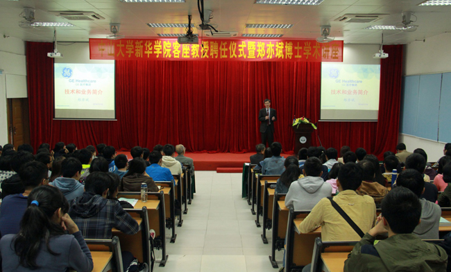 聘任仪式后,郑亦斌教授作了《GE(美国通用电气公司)医疗集团技术与业务简介》的学术报告。