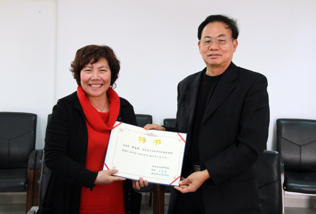 许淑锐副院长(右)为俞雪花教授(左)颁发聘书