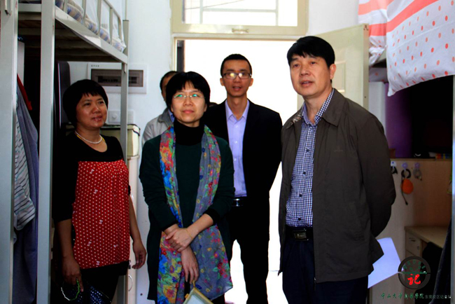 图2 广东省物价局领导视察Beat365学生住宿条件情况
