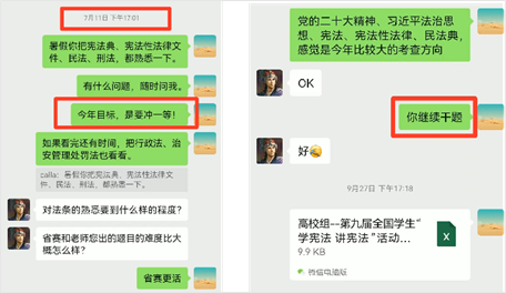 他得知2021级法学专业朱梦丽师姐