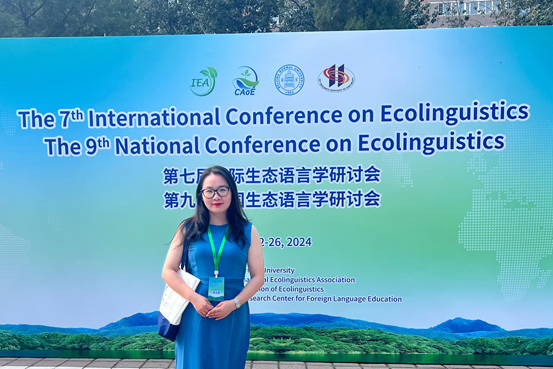她参加多场国内外权威学术会议,坚定中国学术自信,在2019年于丹麦南丹麦大学(欧塞登校区)举办的第四届国际生态语言学研究论坛及2022年于北京师范大学举办的第七届国际生态语言学研究论坛中进行了学术汇报,受到国内外专家学者和相关领域研究生的关注。论文《作为应用语言学的生态语言学》于2023年被中国科学文献计量评价研究中心评为“高被引论文”“高下载论文”。她努力挖掘学术中的新观点、新方法,将其转化为育人资源,2020年指导商务英语专业学生撰写高质量学术论文并成功发表,引导学生紧跟时代步伐,成为具有创新能力和国际视野的栋梁之才,为党的教育事业注入新活力,为培养有学术素养、能为党的事业贡献智慧的学生而赤诚奋斗。