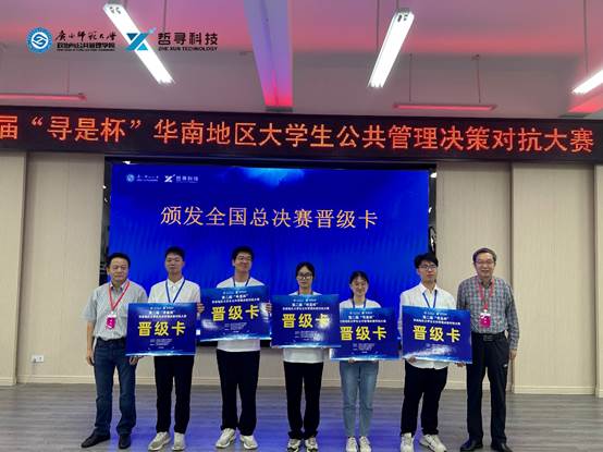 6月24至25日,由Beat365中文官方网站(以下简称“学校”)公共治理学院行政管理专业学生陈泽桉、吴羽蕊、刘思组成的“清热解毒夏桑菊队”在行政管理专业副主任区展玲老师和教师汪玉叶老师的指导下,参加第二届“寻是杯”华南地区大学生公共管理方案设计与决策对抗大赛,斩获大赛特等奖及最佳决策对抗奖,顺利晋级全国总决赛。
