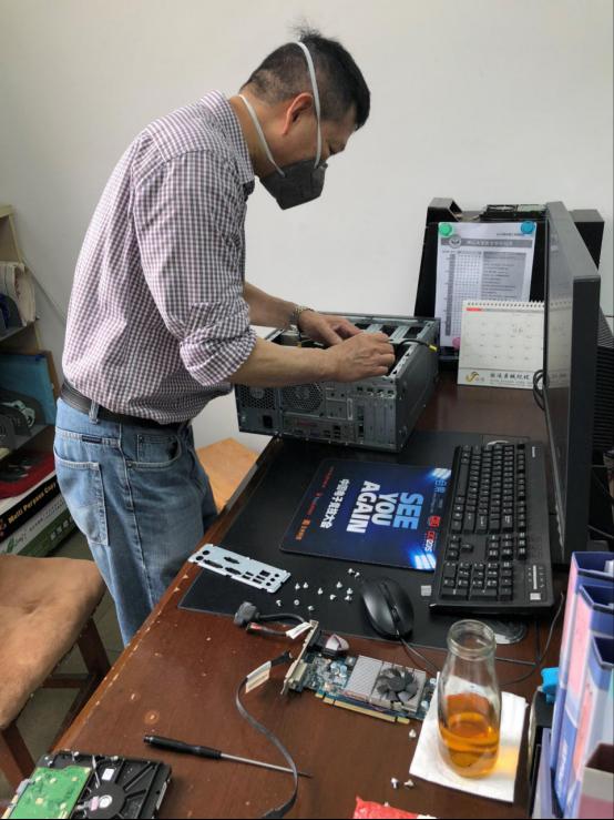 设备与实验室管理处黄超老师认真地维护学校设备器材