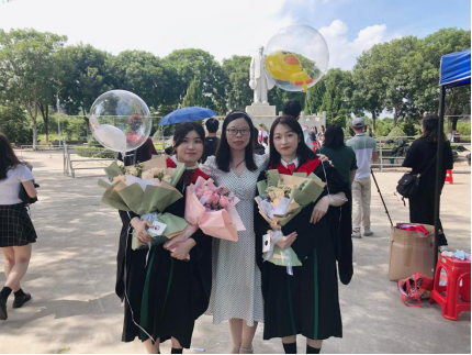 潘欣老师与毕业学生合影