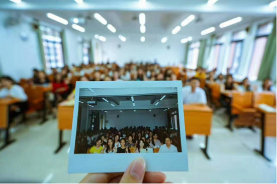 与学生合影