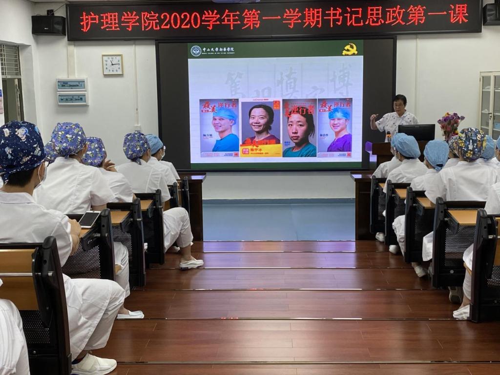 于凤兰(右前)讲授新学期思政第一课(2020.9.30)