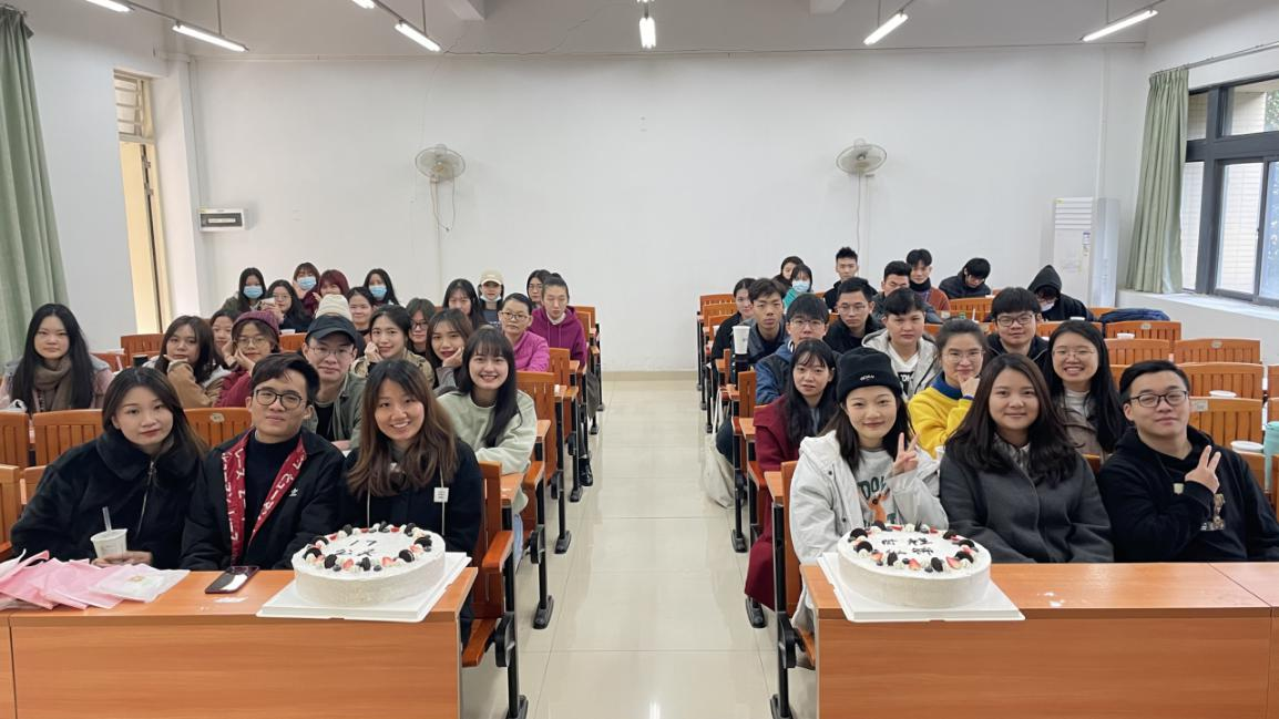 曾皖湘老师(一排右二)与2017级公关专业学生一起庆祝结课