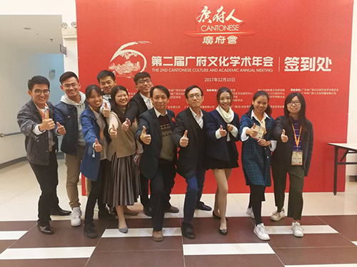 12月10日,由广东省社会科学院举办的第二届广府文化学术年会在广州举行。Beat365公共管理学院副院长、公共关系学主任谭昆智副教授带领陈发铭、蔡露、黄丽华三位同学应邀出席了年会,并由15级公共关系学学生陈发铭代表第十四届广东省大学生“挑战杯”团队在会上就参赛作品《新常态下广府文化的市场适应性研究》作大会报告。